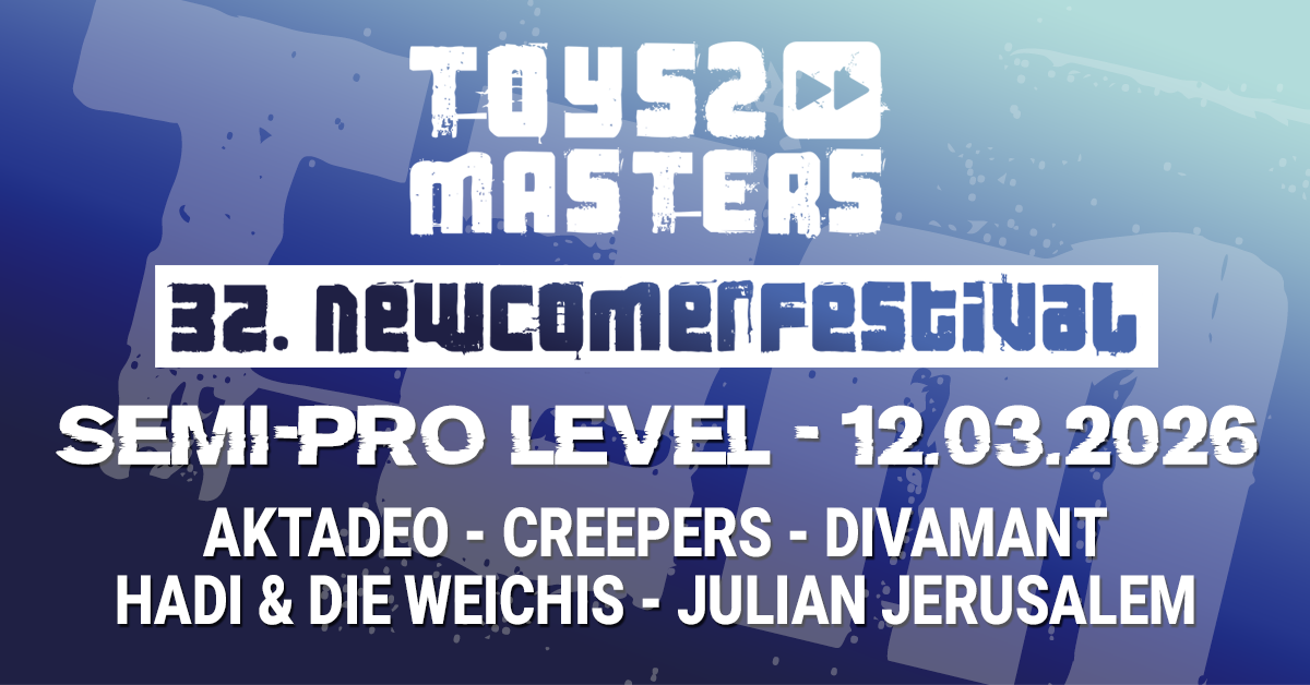 Mit neuem Lineup und dem geballten Wissen aus der Toys2Masters Academy kommen die Acts der 2026er Saison zurück auf die Bühne des RPZ Bonn und zeigen Euch, warum sie einen Platz im Halbfinale verdient haben.